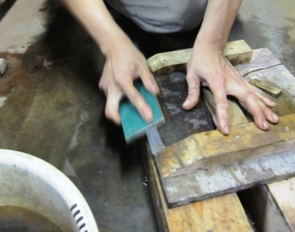 大工KJMが五寸鉋を研いでいます。五寸鉋だと四寸柱をキレイに仕上げる事ができます。