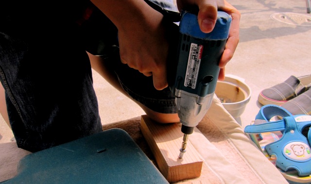 昨日大工YMにもらったインパクトで、朝からベランダでビスを打つ長男。。