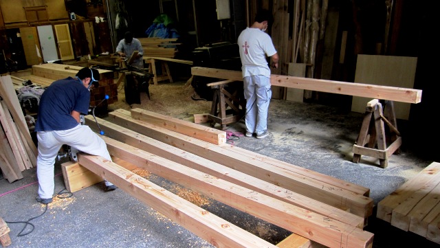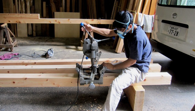 下高井戸の家。土台の刻みが始まりました。手刻みと言っても、ノミやカンナだけでなく有効に電動工具を使います。