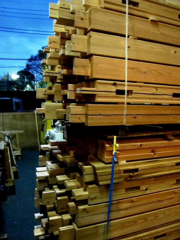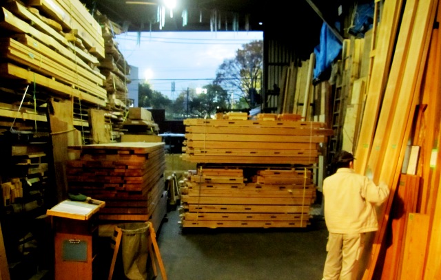 木材部長TTが「面戸、破風、広小舞」などの材料を準備中。