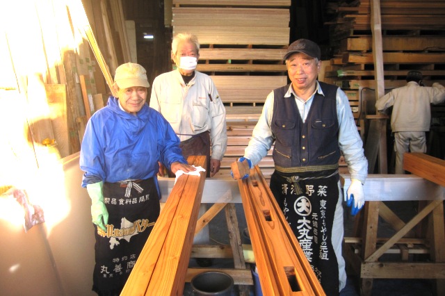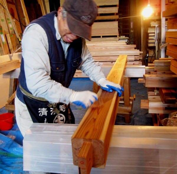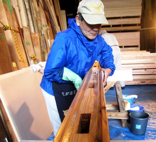 そして柿心を塗ったら、しっかりウエスで拭き取りを行います。