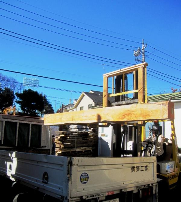 金輪継の仮組 ケヤキ大黒柱下小屋へ 釣堀養生