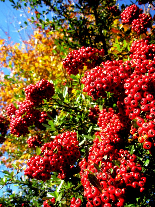真っ赤に実ったピラカンサ。