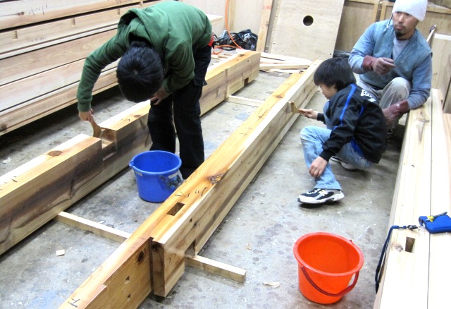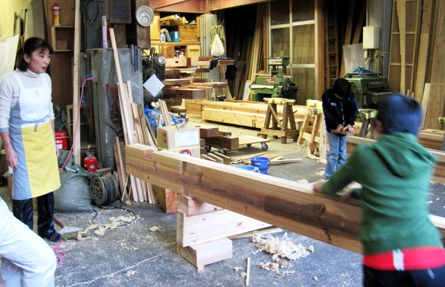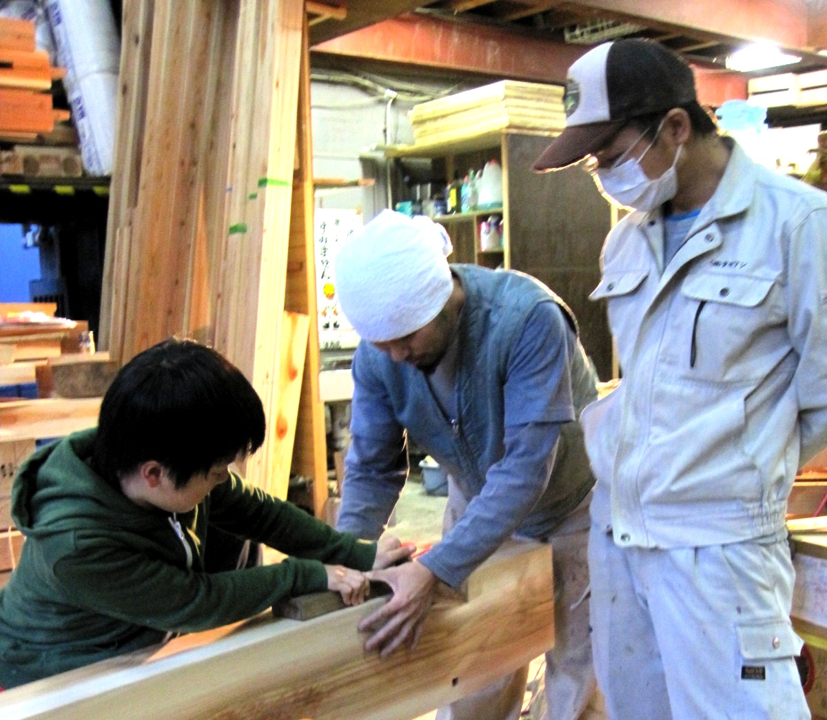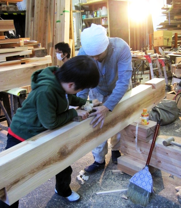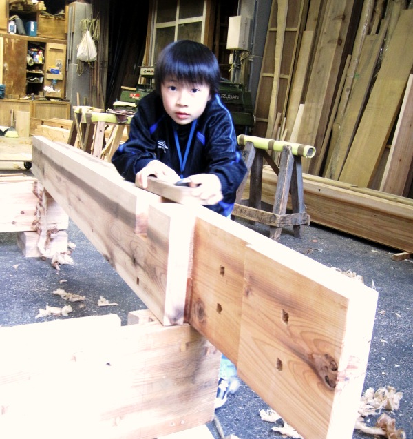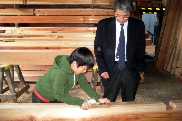 その前に「自分たちの部屋の梁に鉋を入れたい!」と、