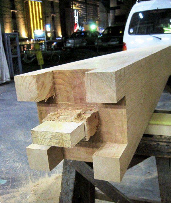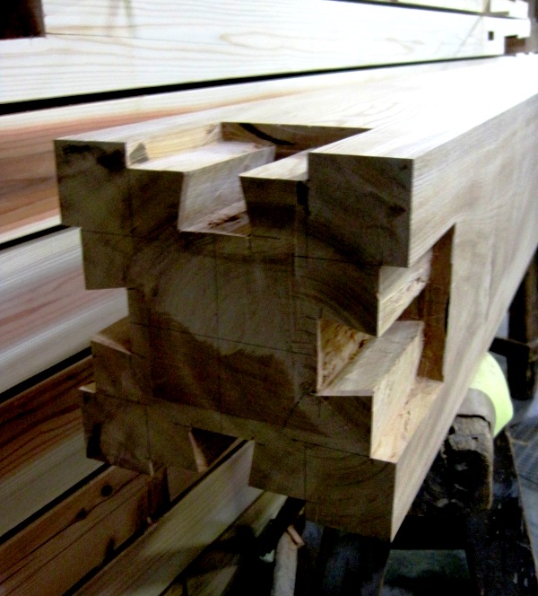 小屋梁の子供鉋 8寸大黒柱の刻み
