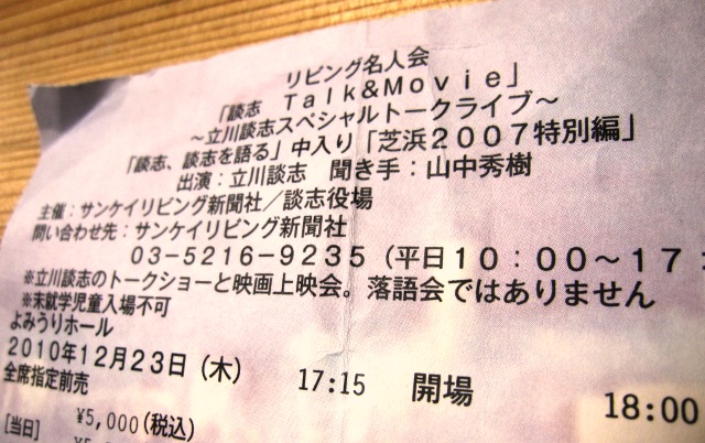 前半は、山中秀樹元フジTVアナとの(途中から弟子の志らくも加わった)トークライブ。