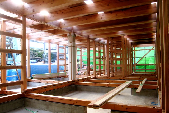 これから仕上工事が始まると、貫は壁の中に隠れてしまいます。