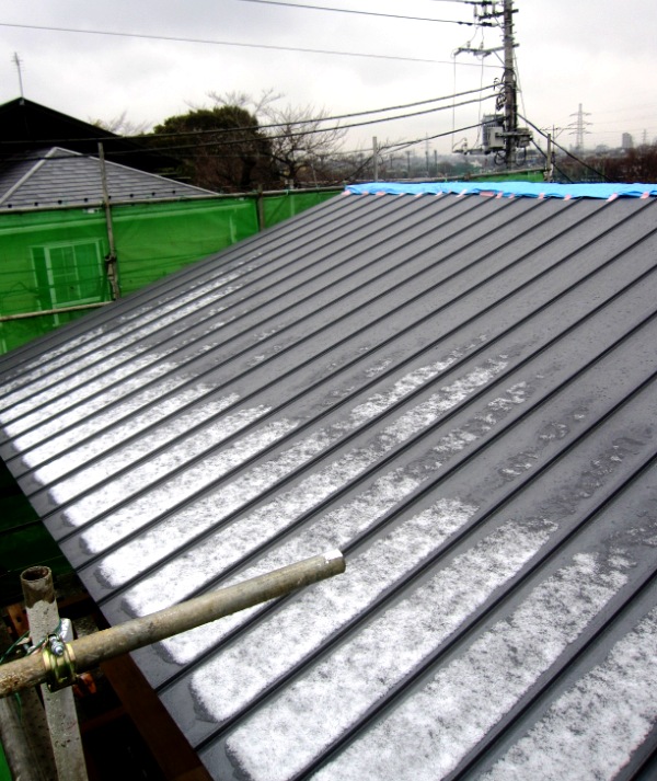 (足場からの跳ね返りもあるが。まだ樋も無い状態ではあるが。)