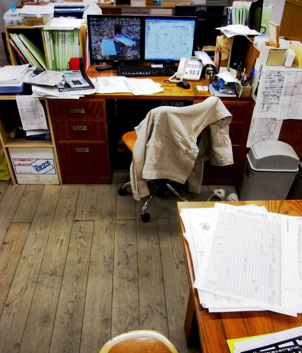 新築工事の見積を明日提出。ラストスパート。 机も相当ちらかってきた。