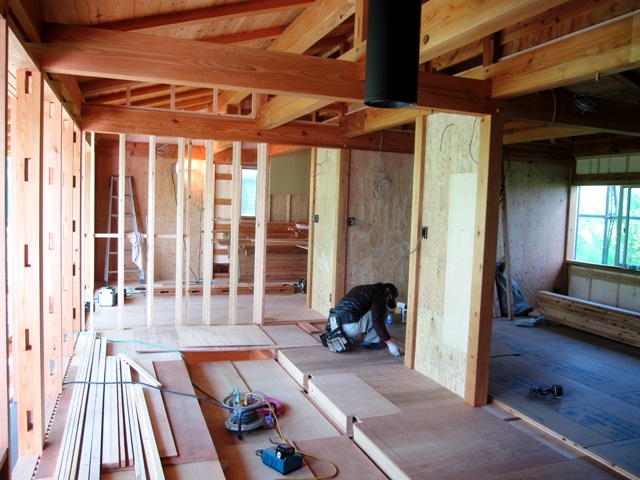 2Fの木工事がいよいよクライマックスに突入しました。左官屋さんが漆喰を塗りに来る日も近づいています。今日は現場にて定例会議もありました。収納などの細かい内容の確認など。