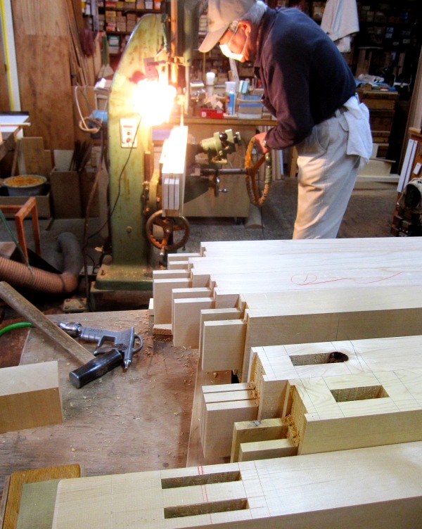 下小屋では青森ヒバの2階外部木製建具製作中。