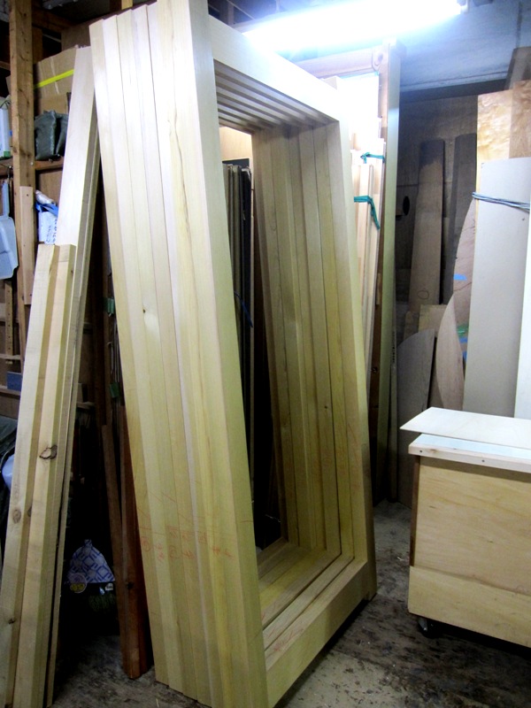 2階の外部木製建具(青森ヒバ)は本日仮組を行いました。