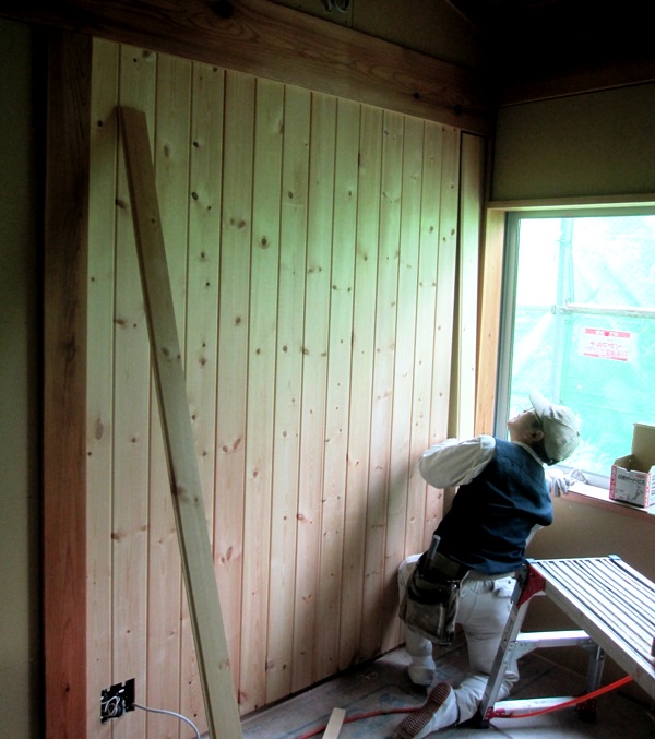 2階の子供部屋は松の羽目板貼がメインの壁仕上になっています。