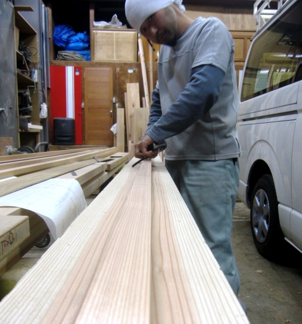 カウンターや建具枠、本棚など無垢材の材料のみ(加工含む)を当社が担当する事に!