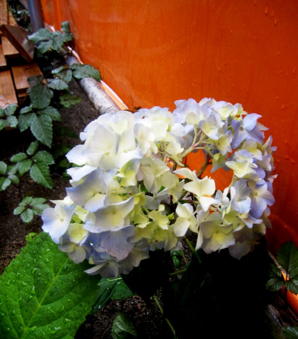 雨で運動会延期、現場にアジサイ、金魚の赤ちゃん