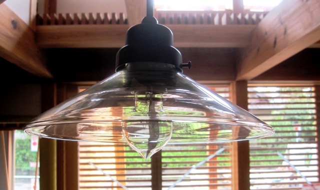 ダイニングテーブル(松の4m一枚板)を照らす照明器具が届きました。