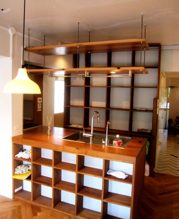 当社の大工KWが削って黒檀の契りまで入れたチーク天板。