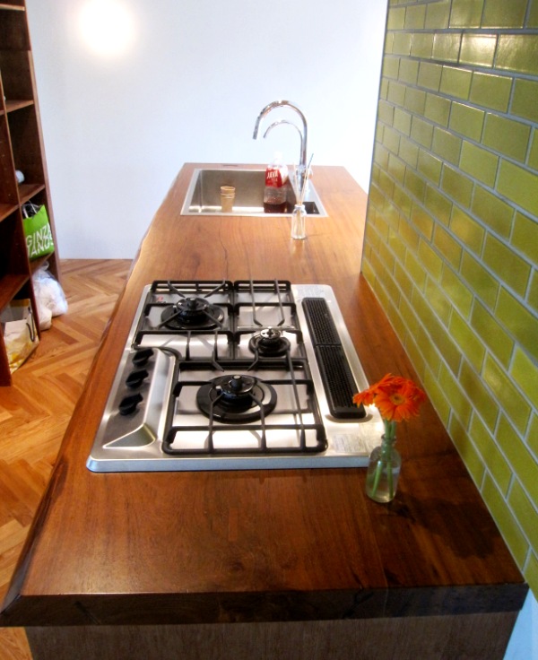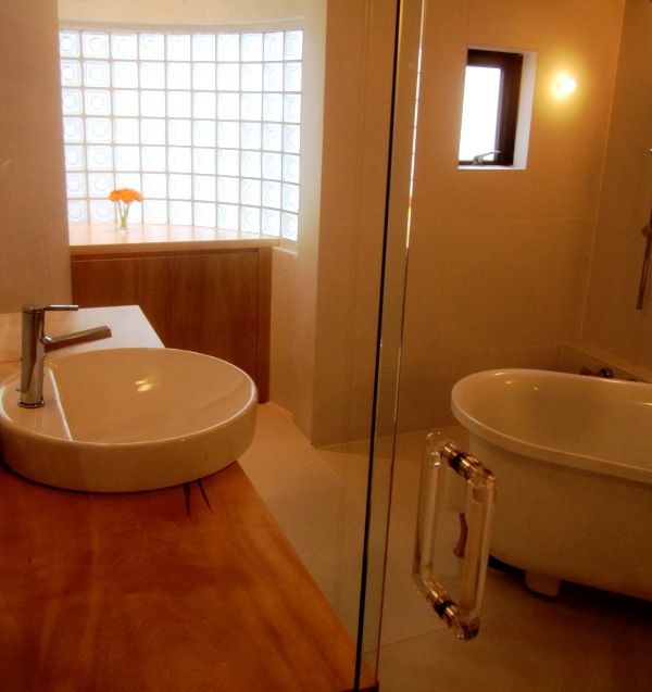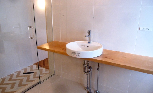 カウンター2枚と建具枠、バスルームは全て「栃(とち)」。