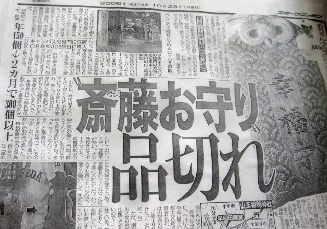 甲子園を沸かせた斉藤祐樹率いる早稲田実業ナインが握り締めていたお守り。