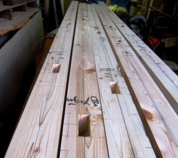 下小屋では、親方:依田が土台の墨付完了。