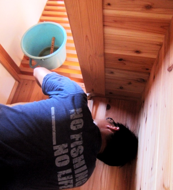 内部では木部の塗装。
