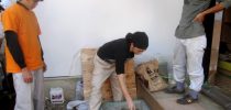 コンクリートの調合を教える。火打梁のボルトを隠す。