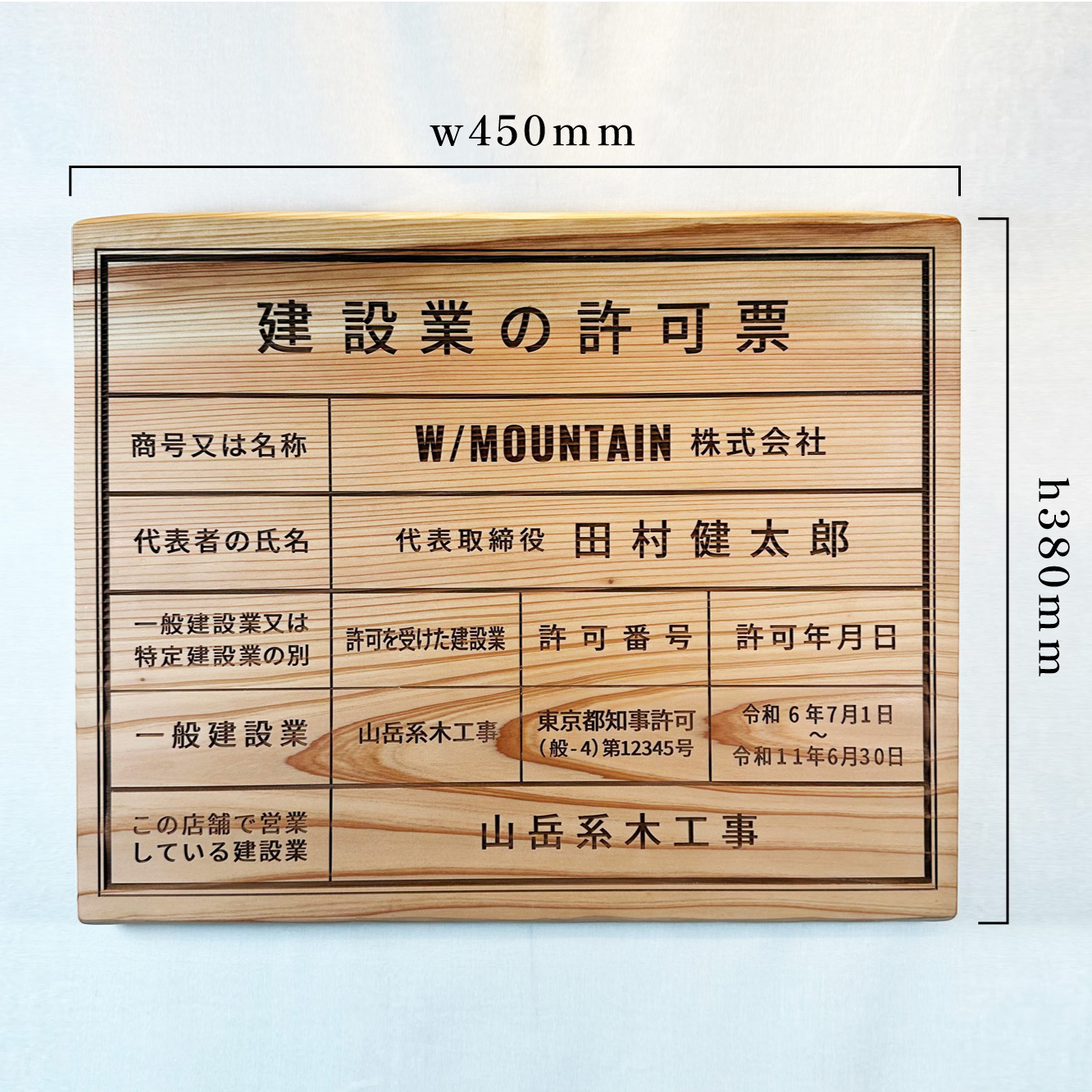 建設業法上で定められた建設許可票のサイズ、縦350mm以上、横400mm以上をクリアしています。